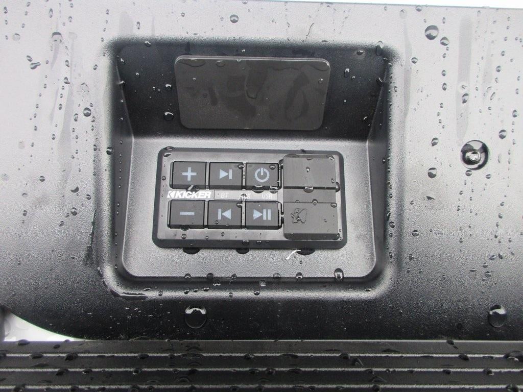 - A weatherproof audio package that fits the MultiPro™ exclusively. Bluetooth®® sound streams from connected devices to the 2-channel, 100 watt, 50 watts RMS per-channel Tailgate Sound System. The illuminated display puts the user in charge of the programming track, volume and source