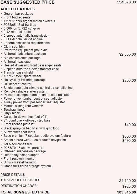 1-Owner New Vehicle Trade, Sold Here New! SLE 3.6 V6 Crew Cab 4x4. All Terrain, Navigation System, Towing Package, Heavy Duty Trailering Package, 3.42 Rear Axle Ratio With Locking Rear Differential, Backup Camera, Heated Seats, Leather Wrapped Steering Wheel, Steering Wheel Radio Controls, Automatic Air Conditioning, Spray In Bedliner, Black Running Boards, Sliding Rear Window, Soft Tonneau Cover, Bose Premium Audio Brand, Remote Start, Remote Keyless Entry, Rear Window Defroster, Power Windows, Power Locks, Power Mirrors, Rear Tinted Windows, Alloy Wheels. This vehicle has good tires, and is in great condition! This Canyon has a clean vehicle history report! Call us today, this vehicle won't last long at this price! 618-344-0121 Laura Buick GMC, Serving our community for over 40 years!! We are a family owned dealership committed to providing our customers the best deals backed by outstanding service!