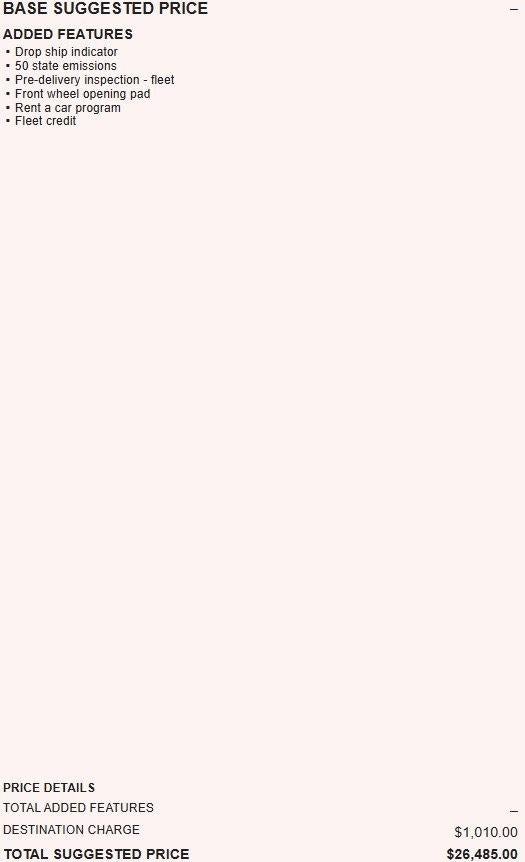 The Manufacturer's Suggested Retail Price excludes tax, title, license, dealer fees and optional equipment. Dealer sets final price.