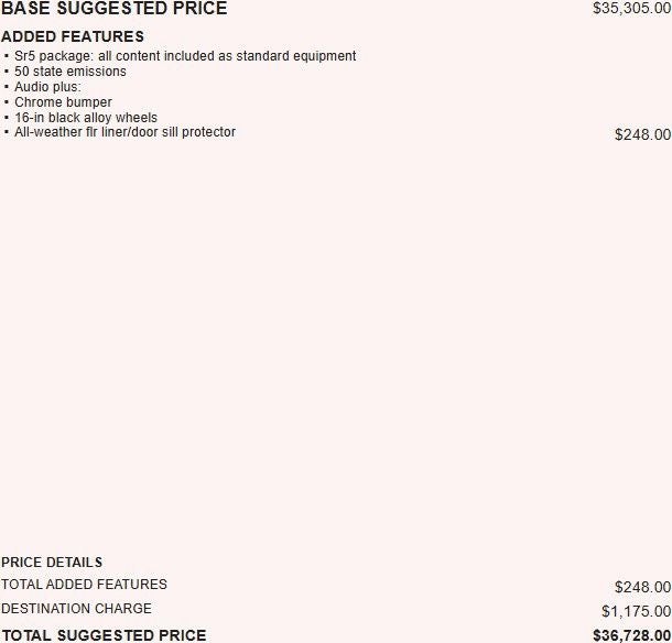 The Manufacturer's Suggested Retail Price excludes tax, title, license, dealer fees and optional equipment. Dealer sets final price.